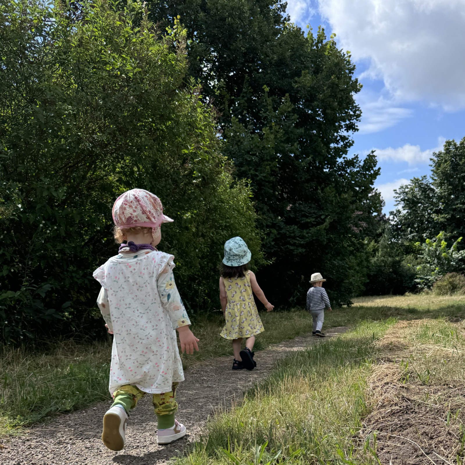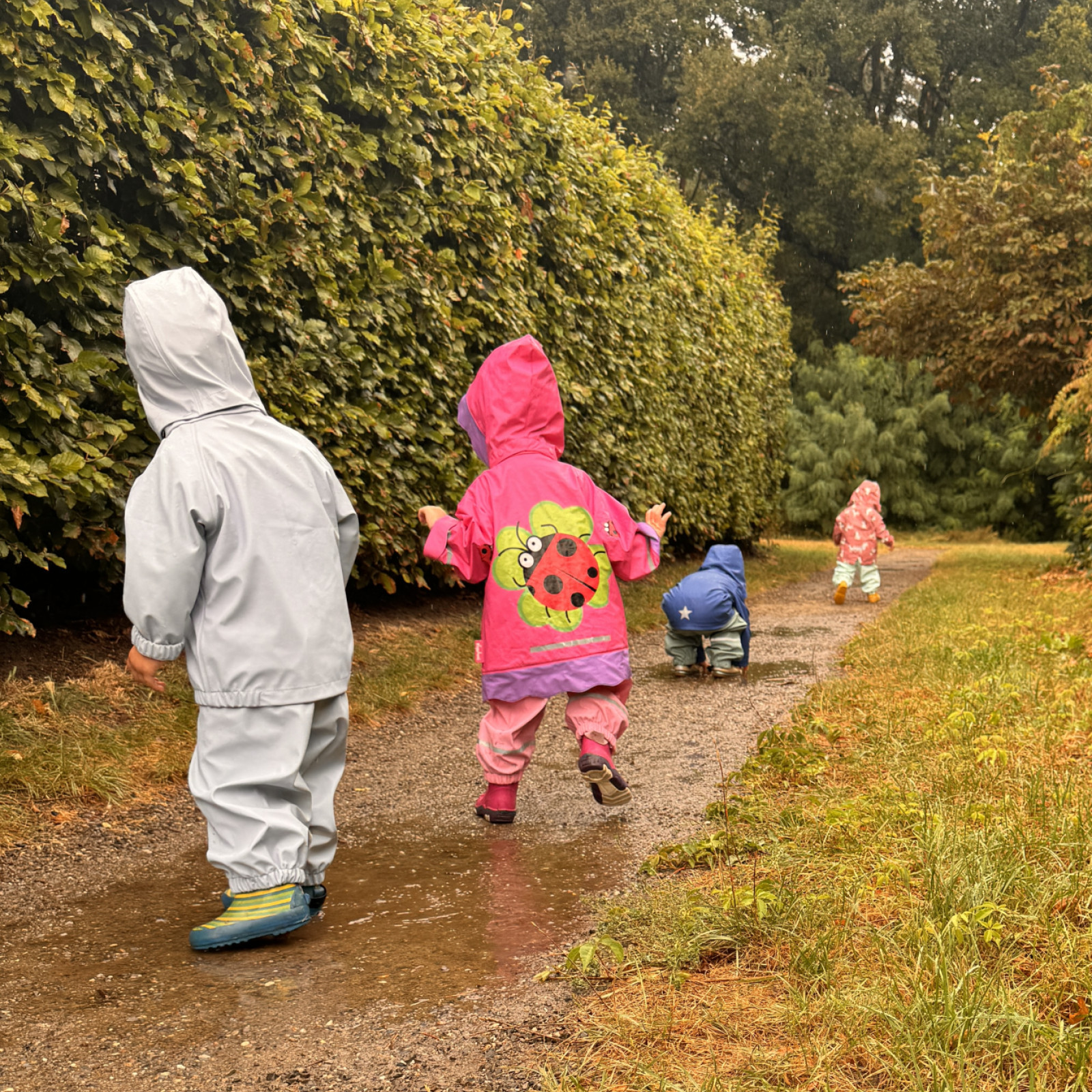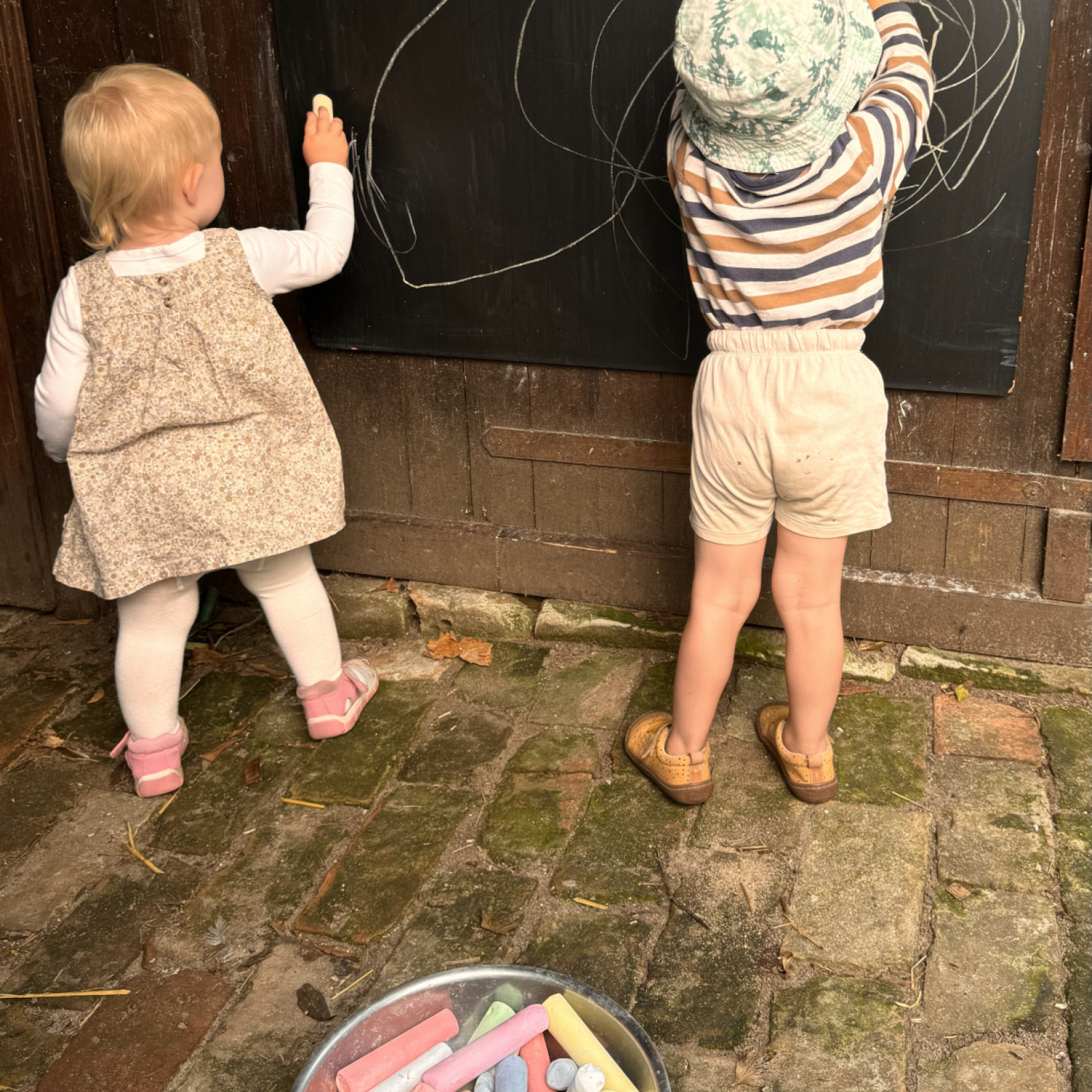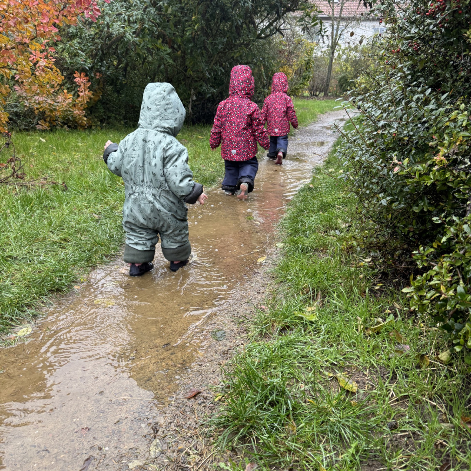... ein kleiner Garten mit Sandbereich, Matschmöglichkeit und Schattenplätzen.