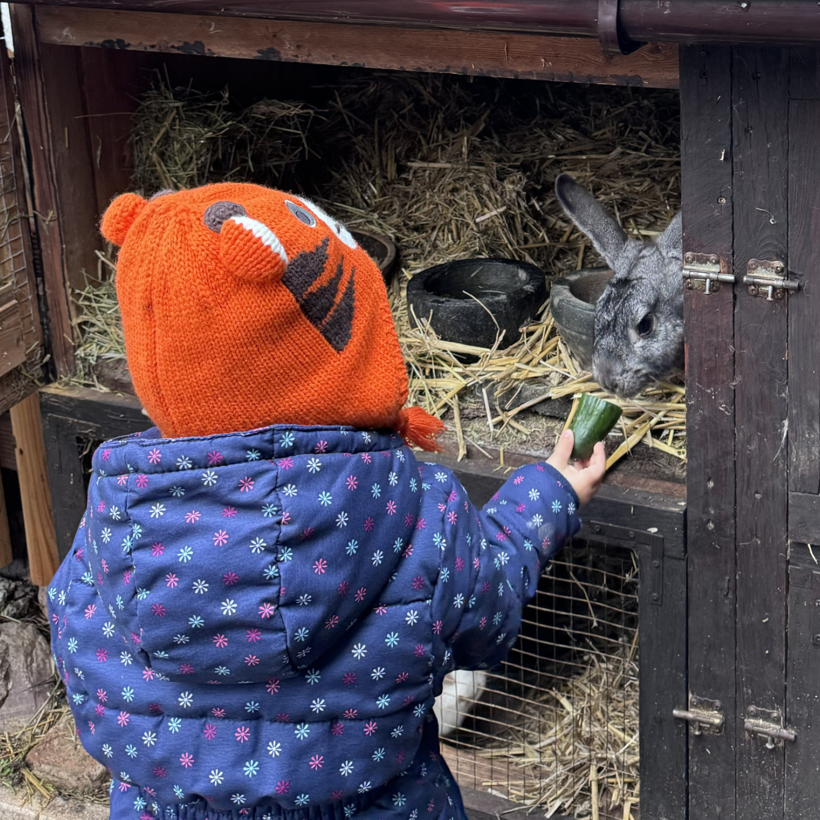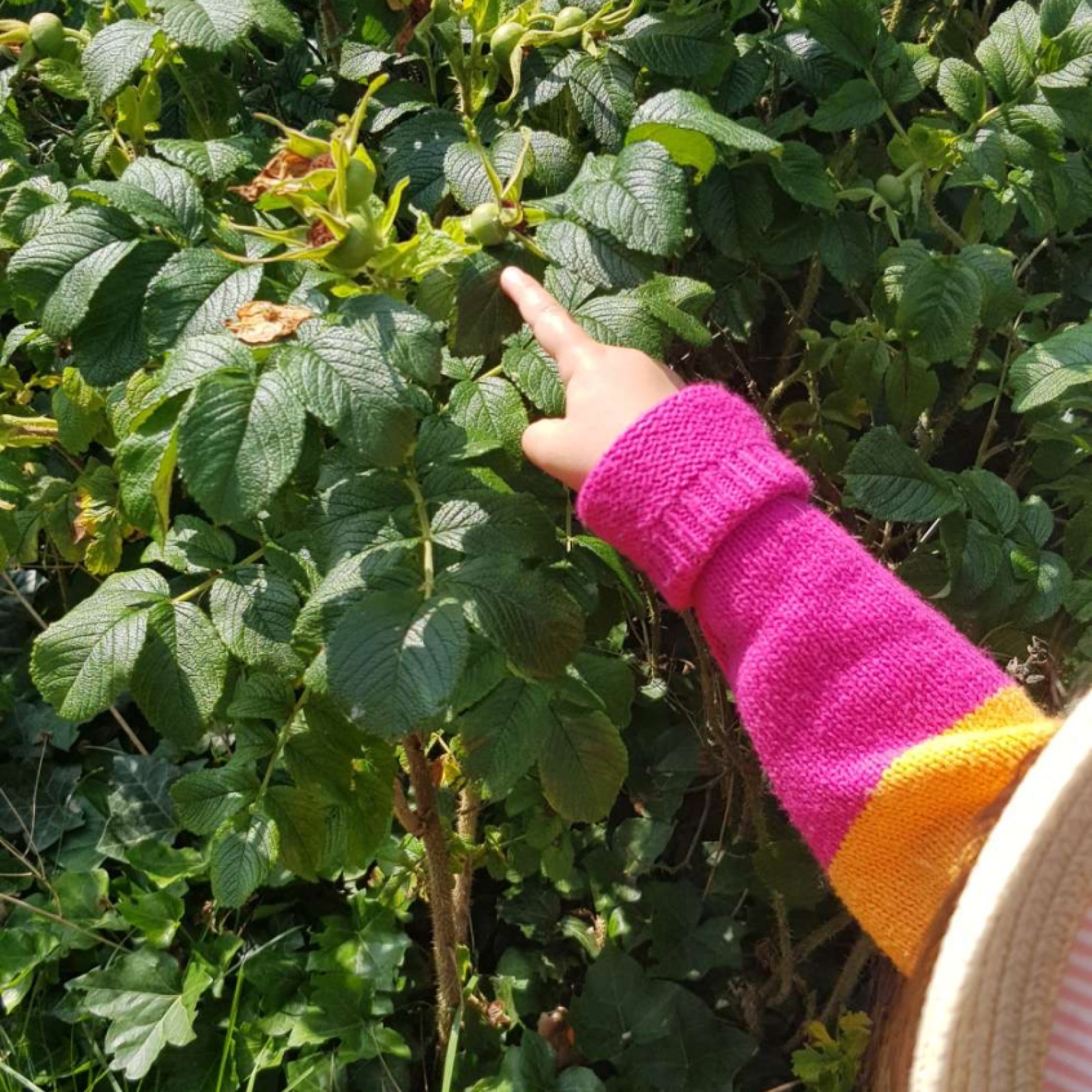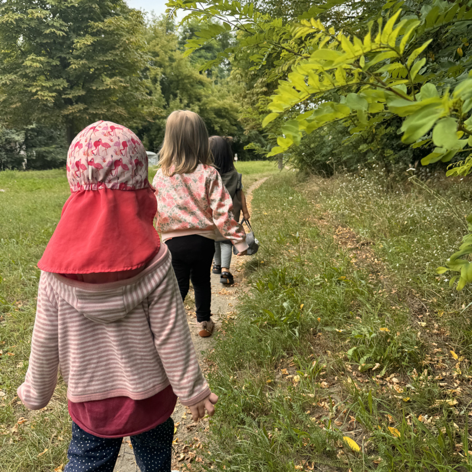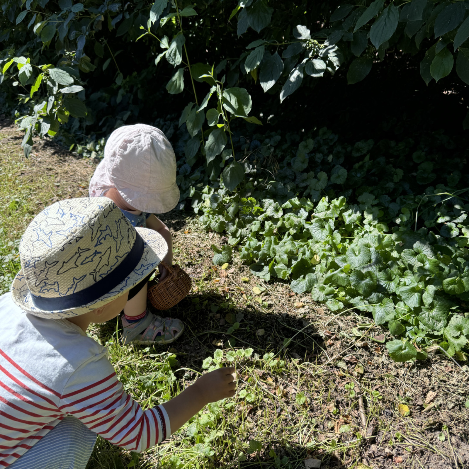 ... ein kleiner Garten mit Sandbereich, Matschmöglichkeit und Schattenplätzen.