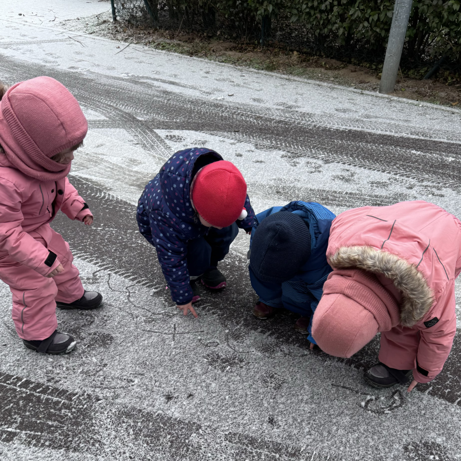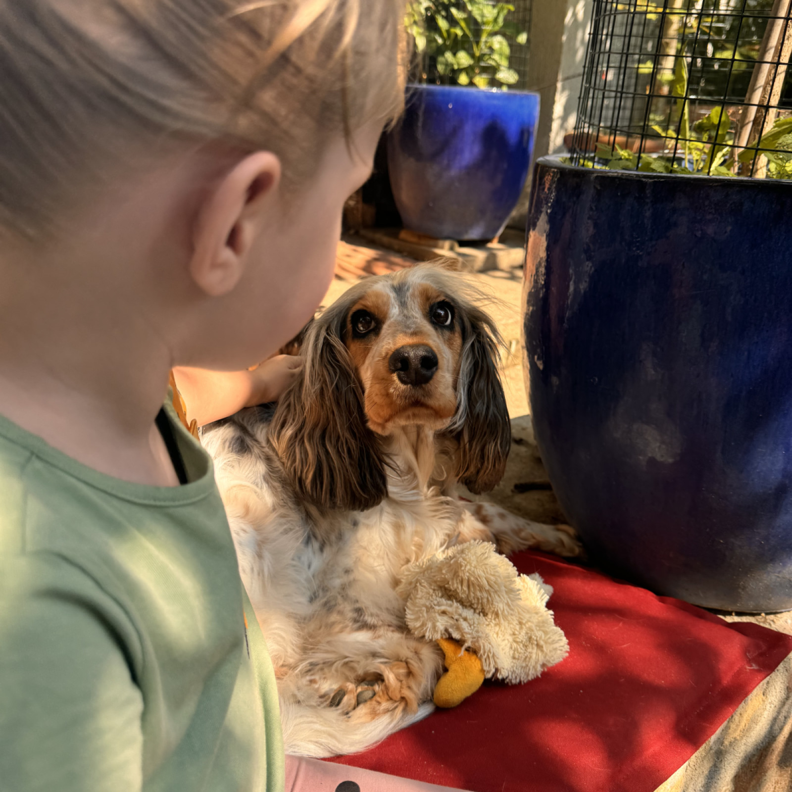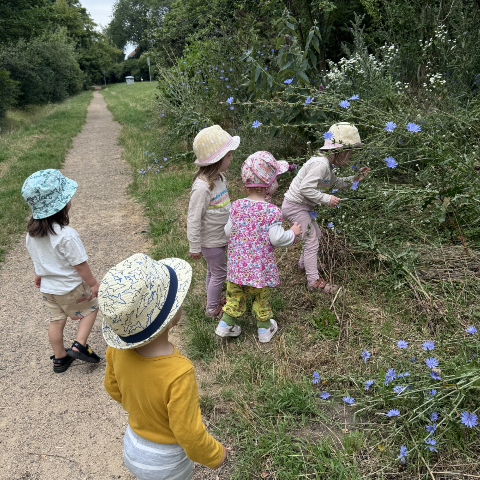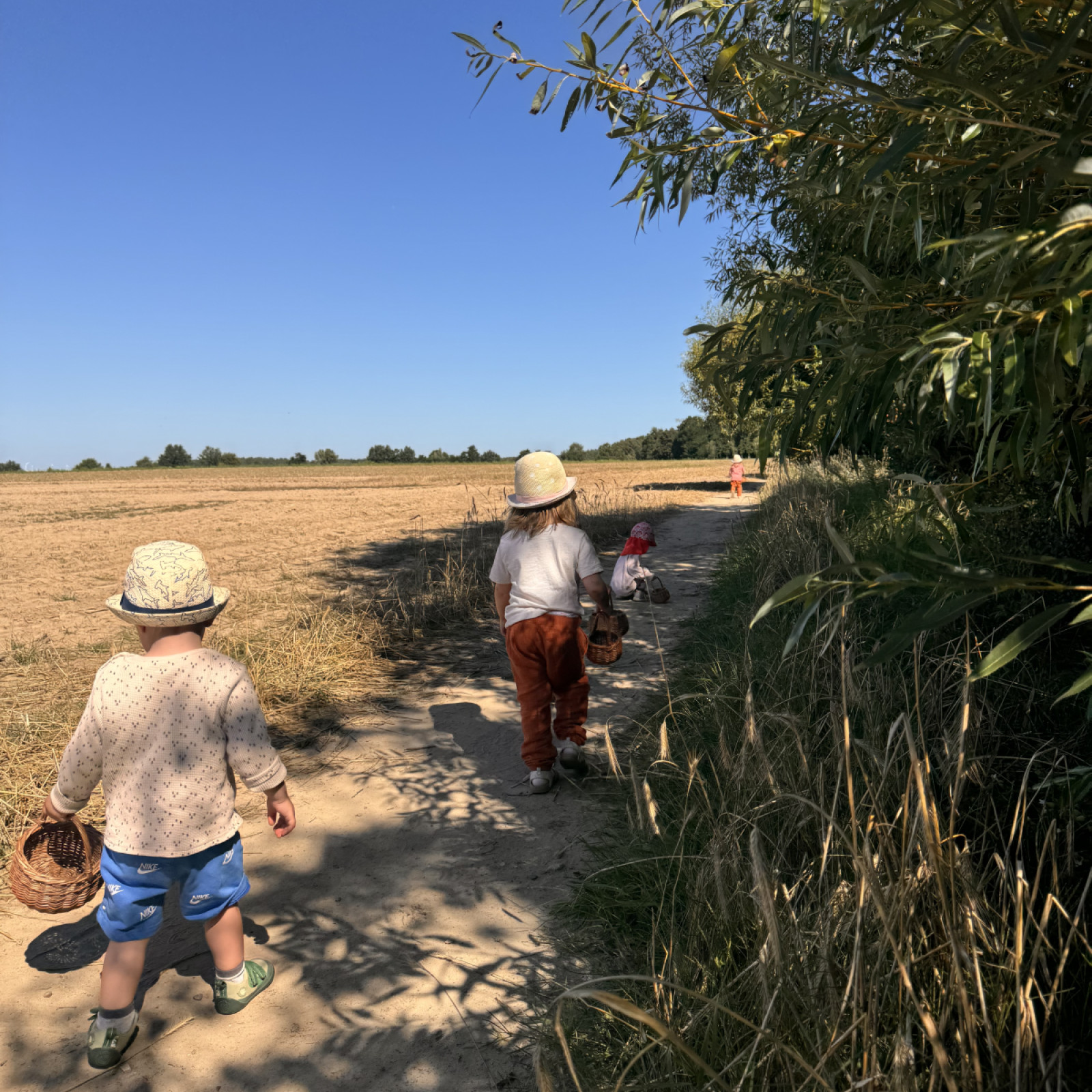 ... ein kleiner Garten mit Sandbereich, Matschmöglichkeit und Schattenplätzen.